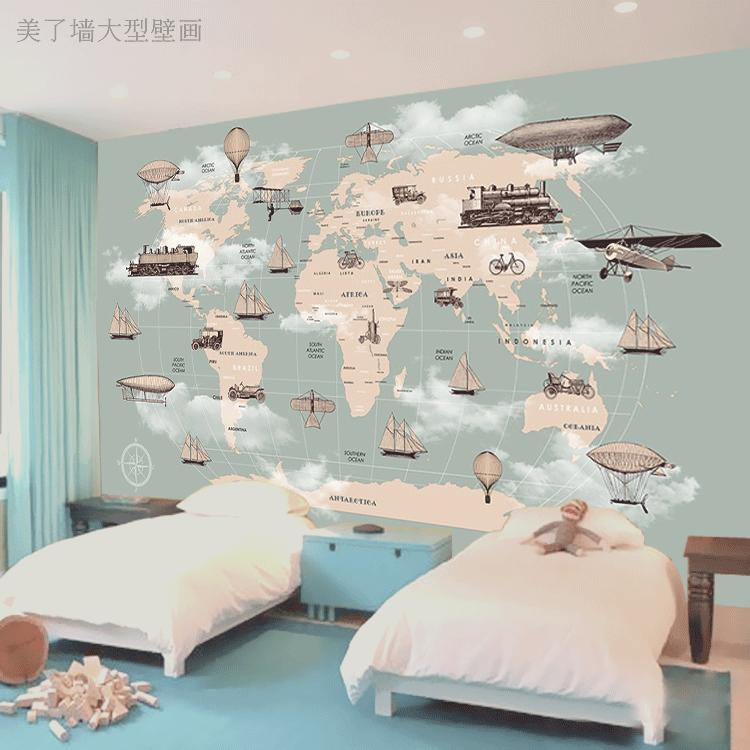 3d手繪卡通動物壁紙兒童房臥室幼兒園教室英語培訓班世界地圖壁紙